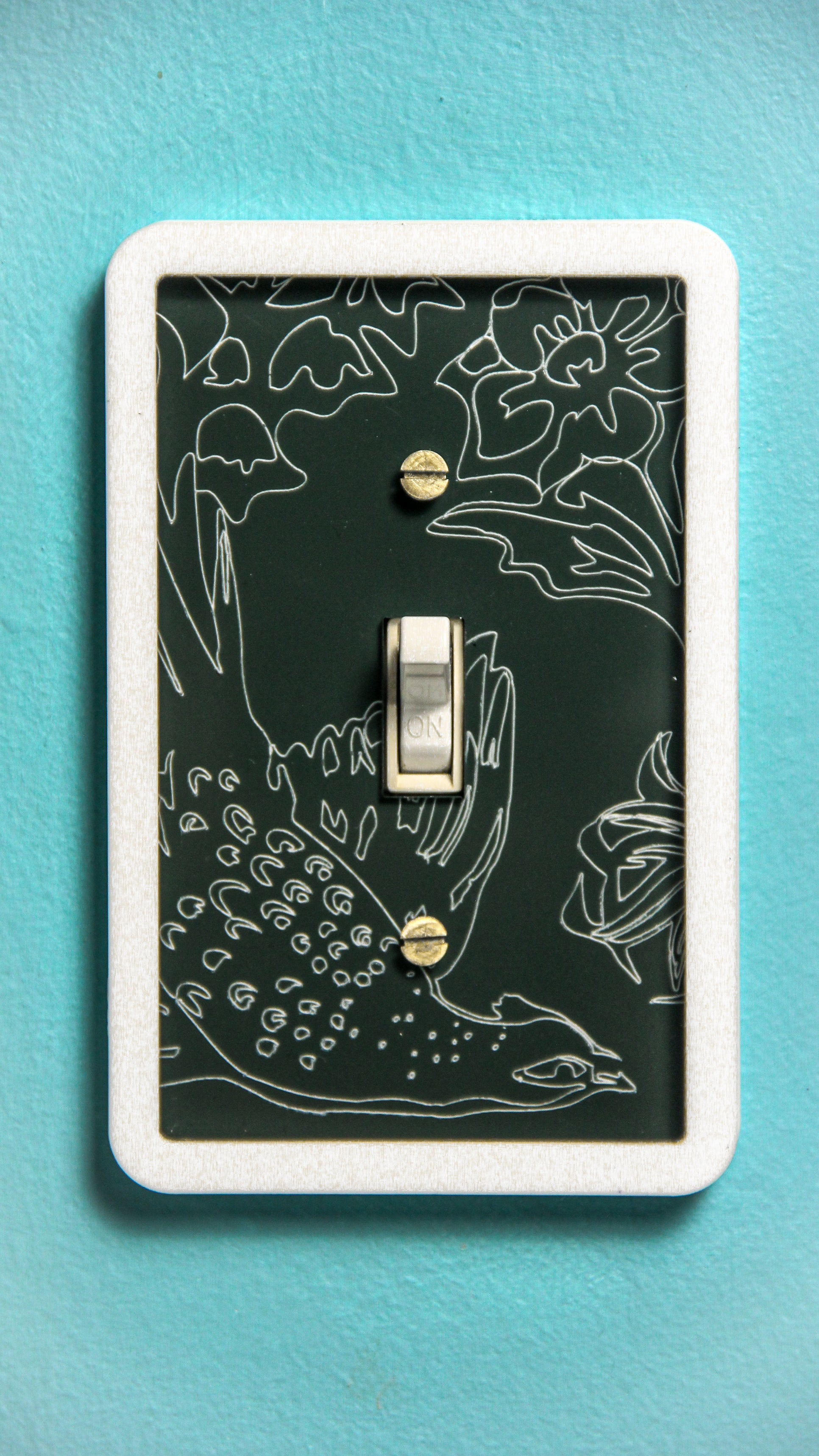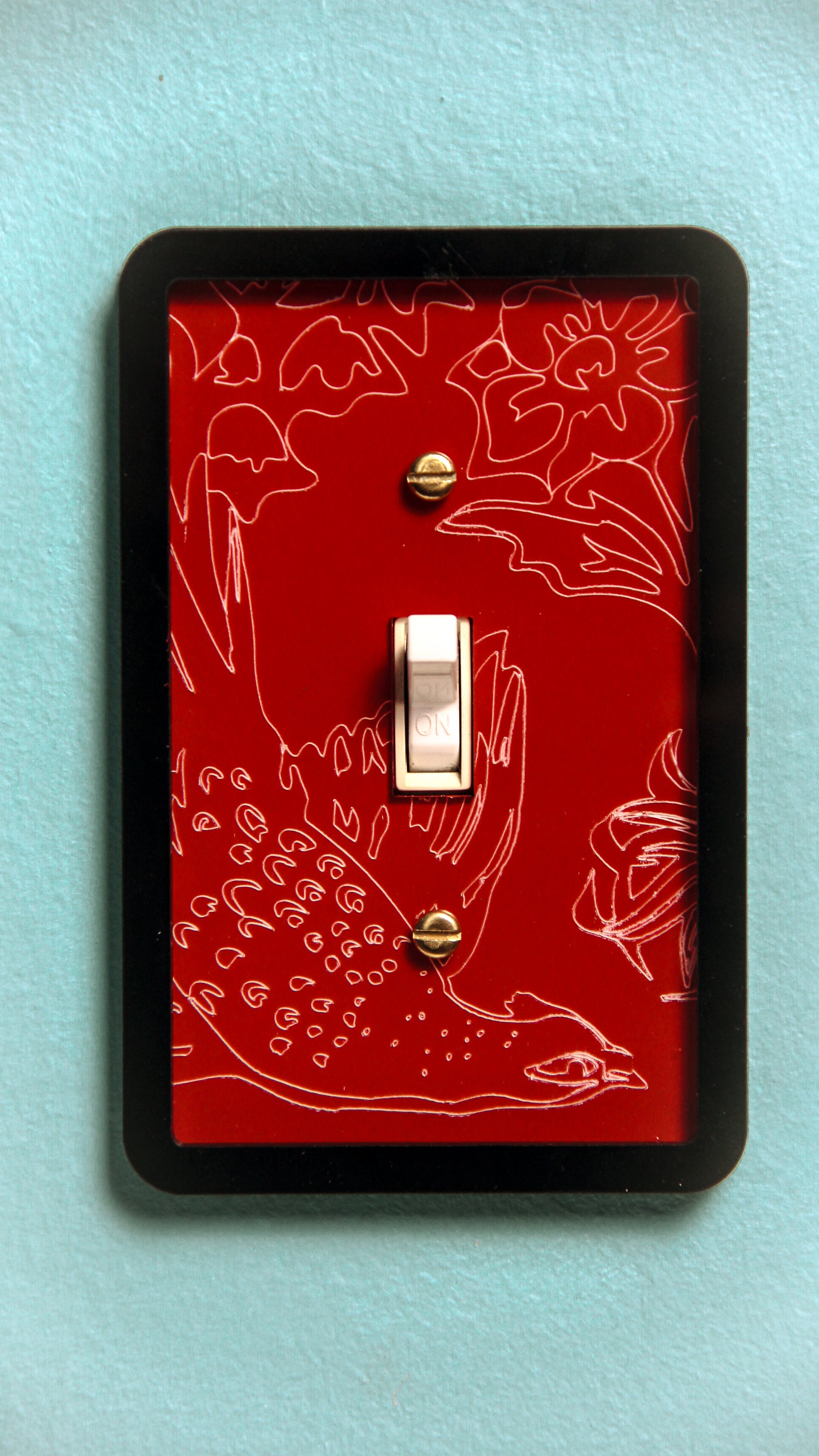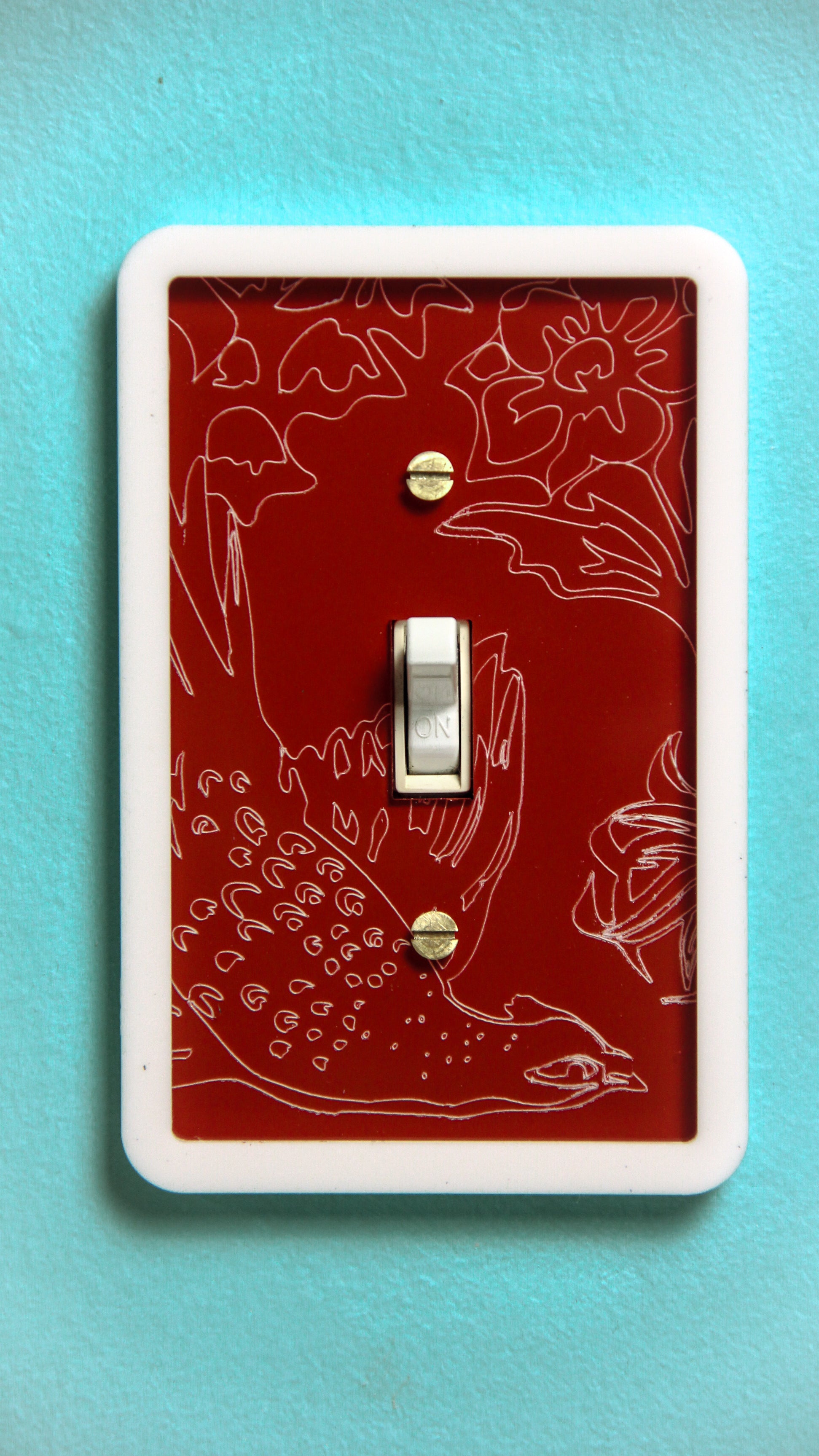 Each cover is handmade from clear acrylic plastic, laser-etched, and painted.