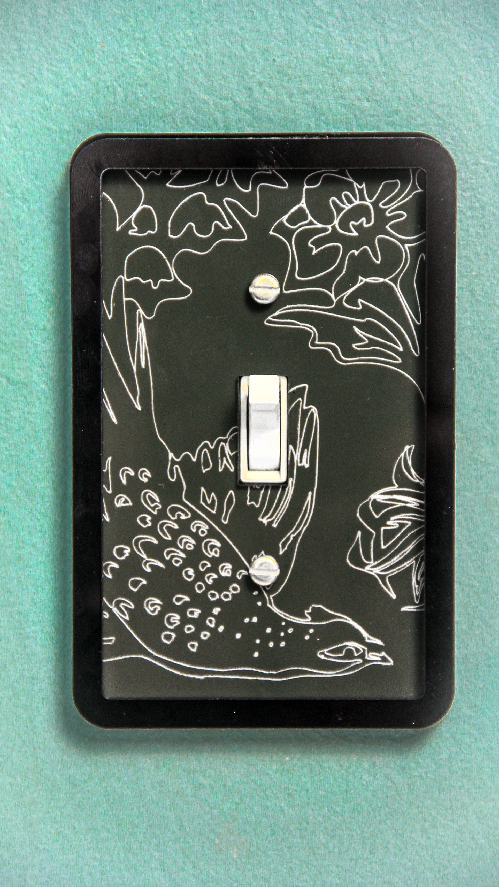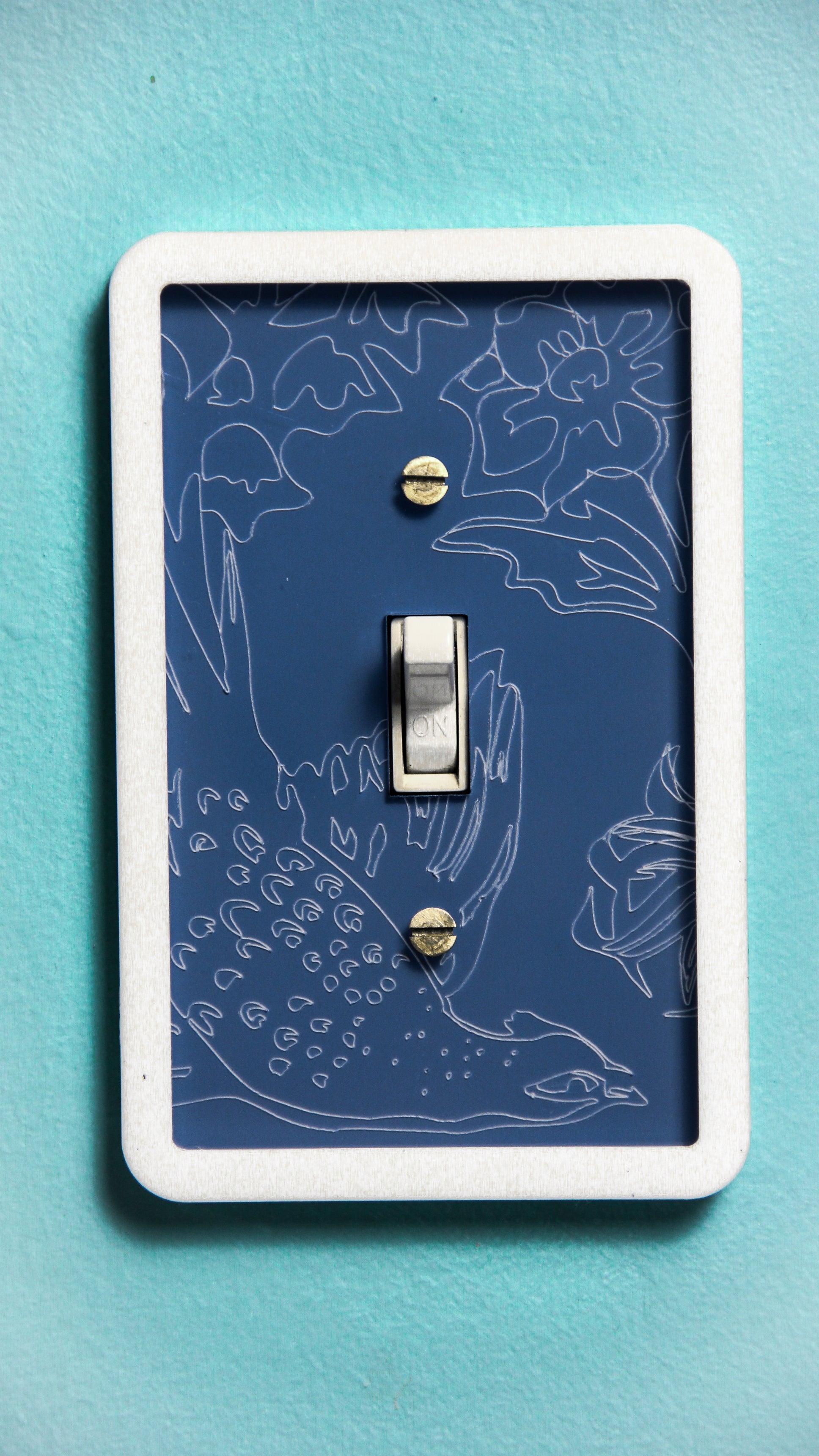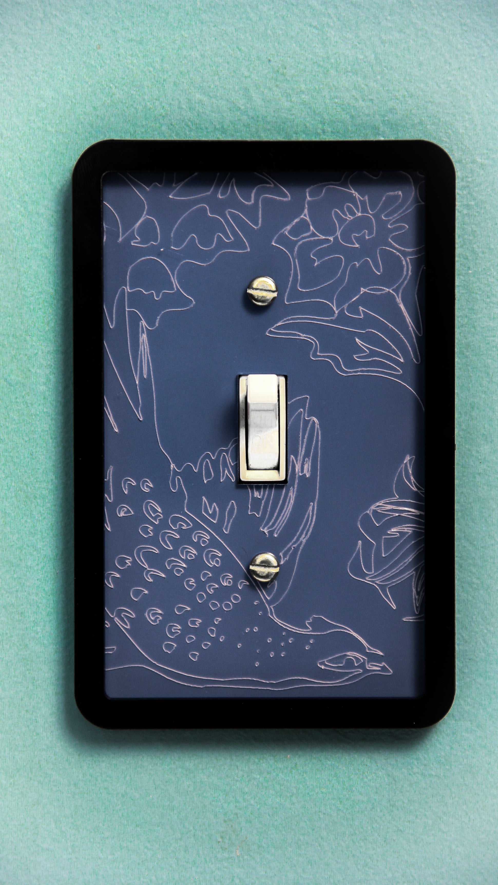 Each cover is handmade from clear acrylic plastic, laser-etched, and painted.