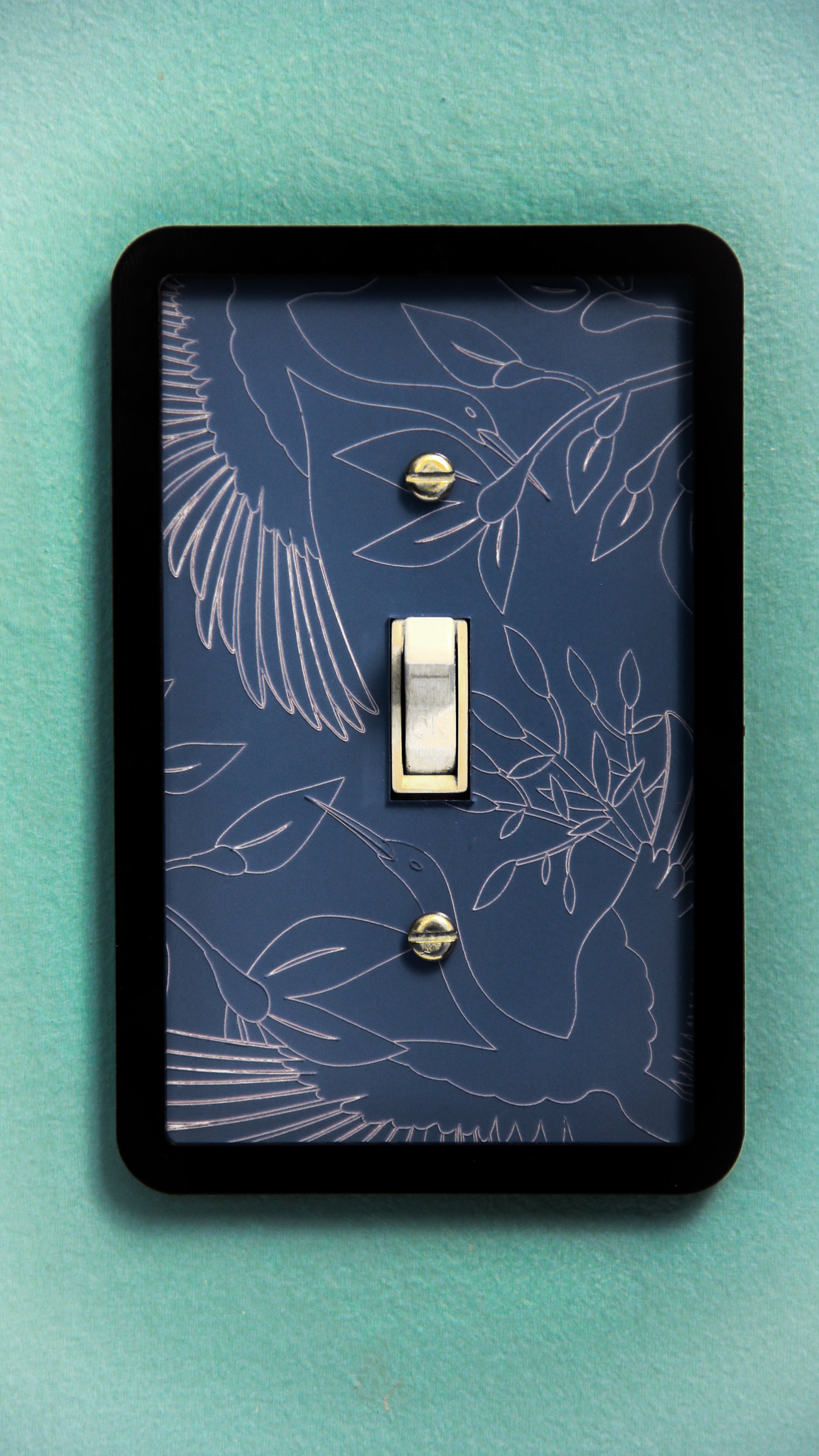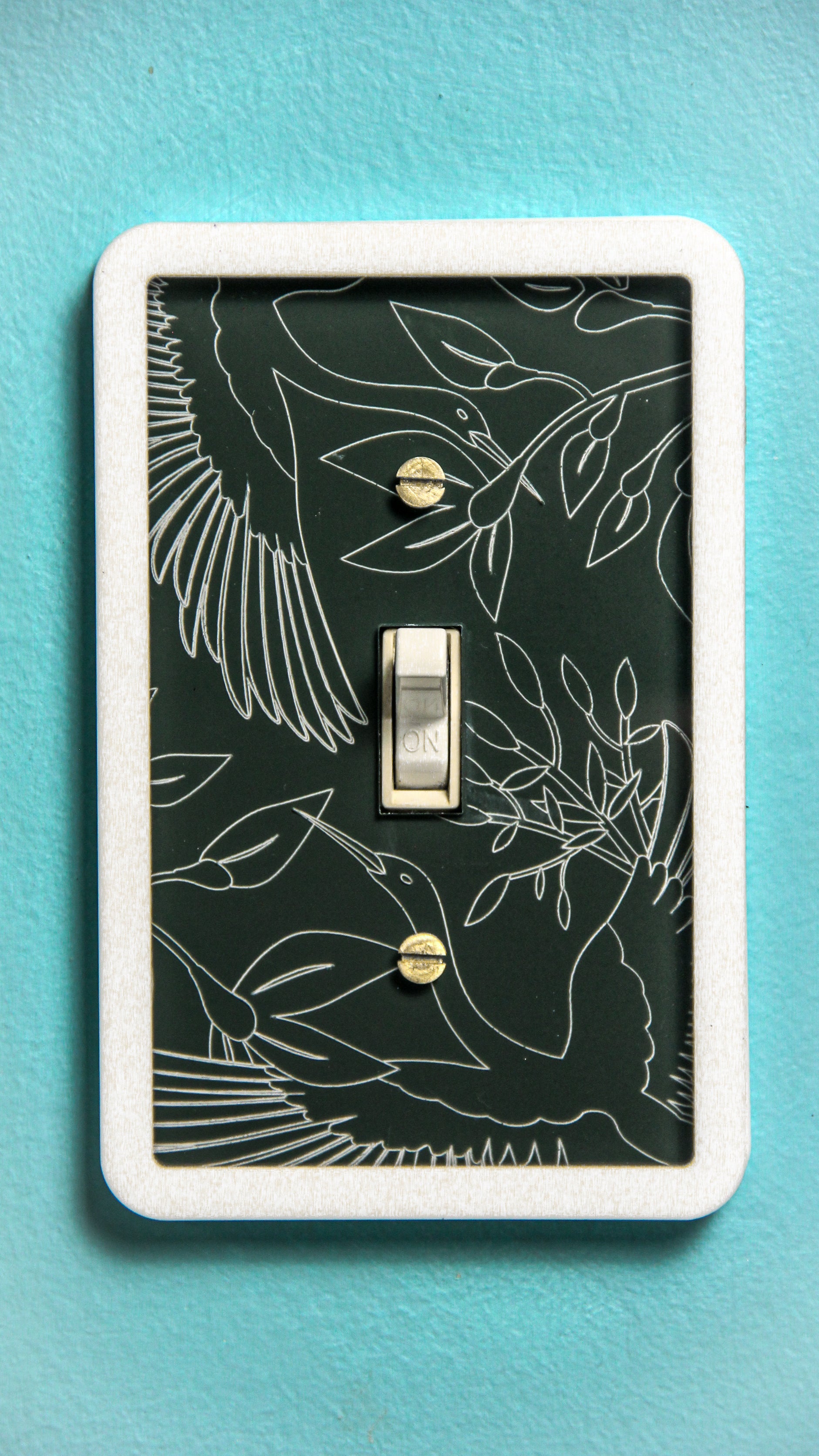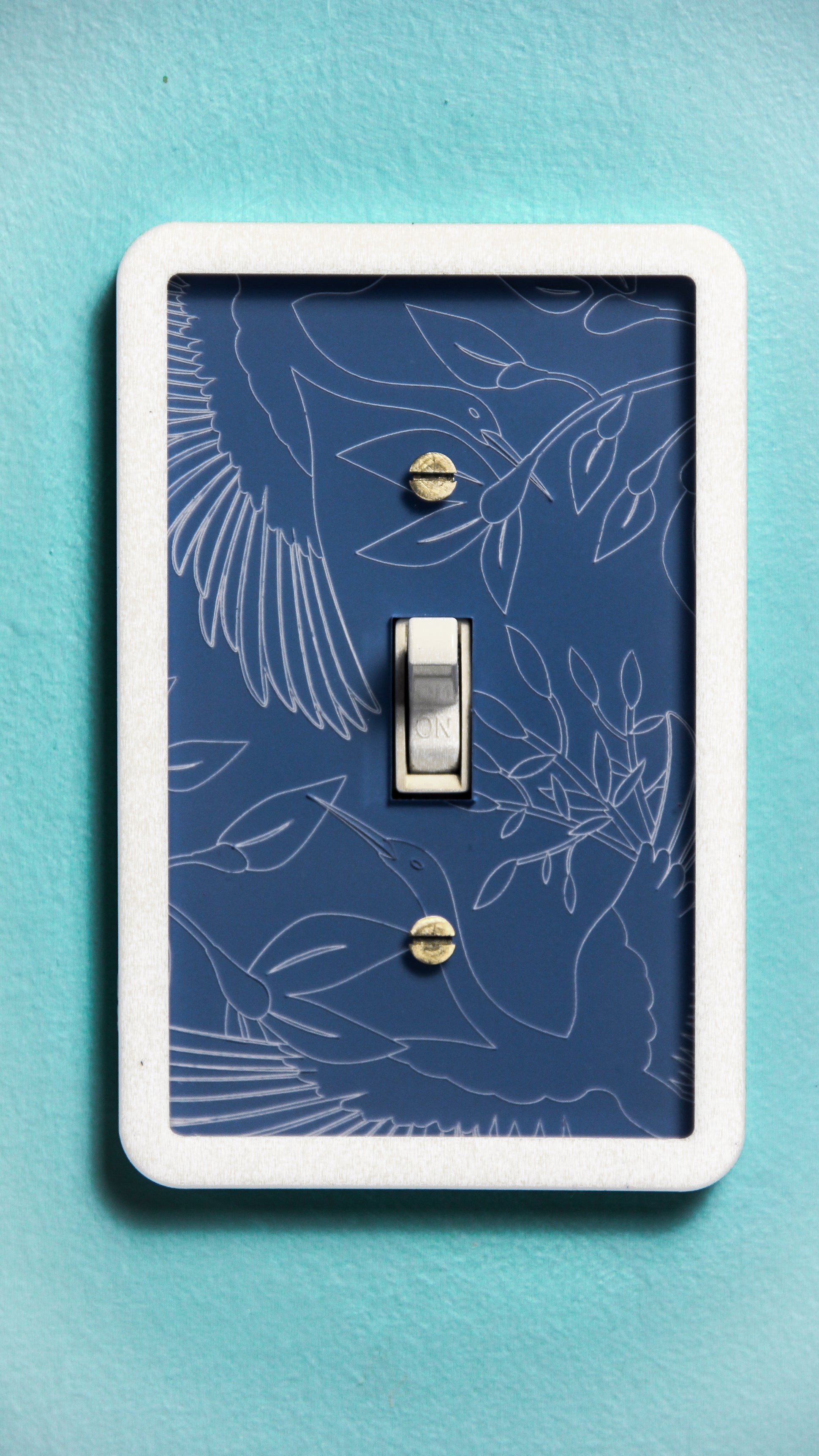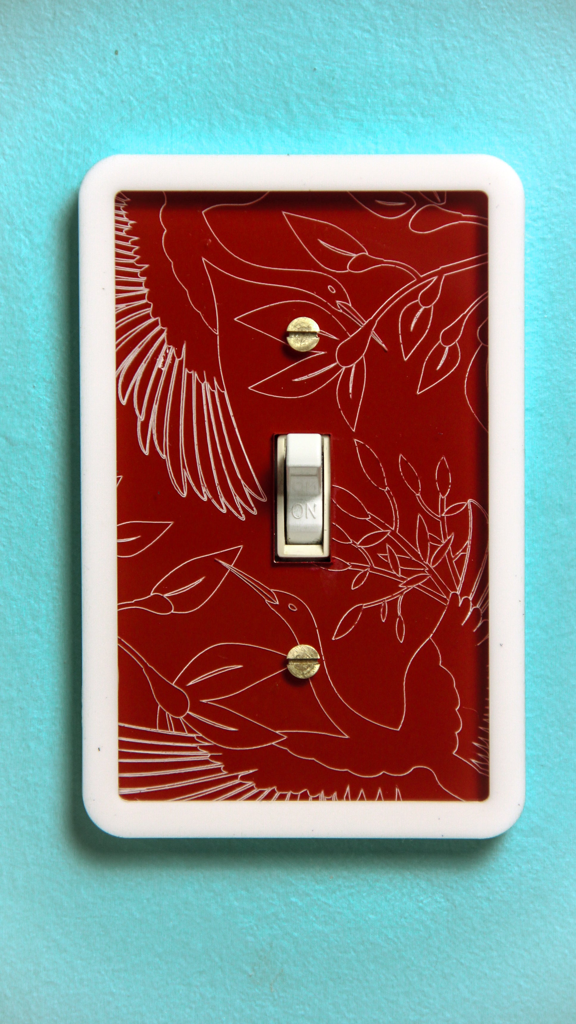 Each cover is handmade from clear acrylic plastic, laser-etched, and painted